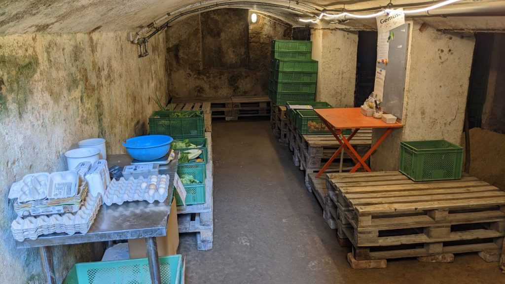 Bitte helft mit, dass es im Depot übersichtlich und aufgeräumt bleibt. Die leeren Napfkisten bei kleinen Stapeln bitte unter die noch vollen Kisten stellen. Wenn es zu viele Kisten sind könnt ihr sie erstmal rechts um die Ecke stellen. Wir haben versucht das mit Schildern ersichtlich zu gestalten. Die Obst-Napf-Kisten bitte bei dem Obst-Bereich stehen lassen.
