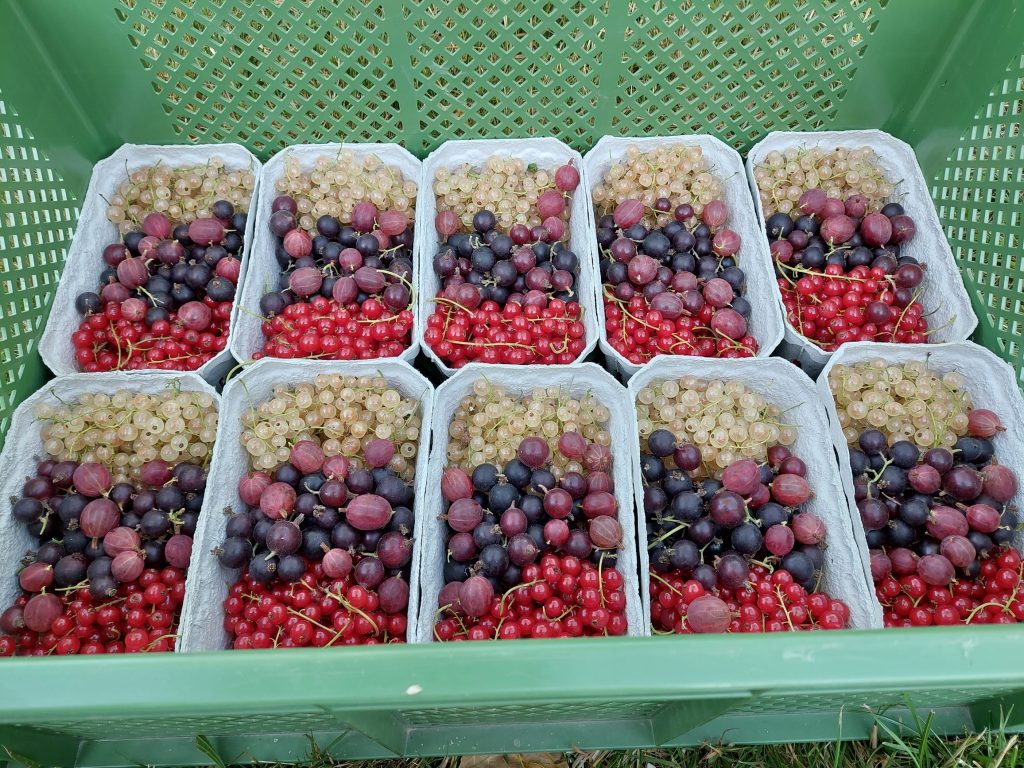 Unser Beerenangebot umfasst verschiedene Johannisbeer-Sorten, Stachelbeeren, Jostabeeren, Aronia- und Himbeeren.