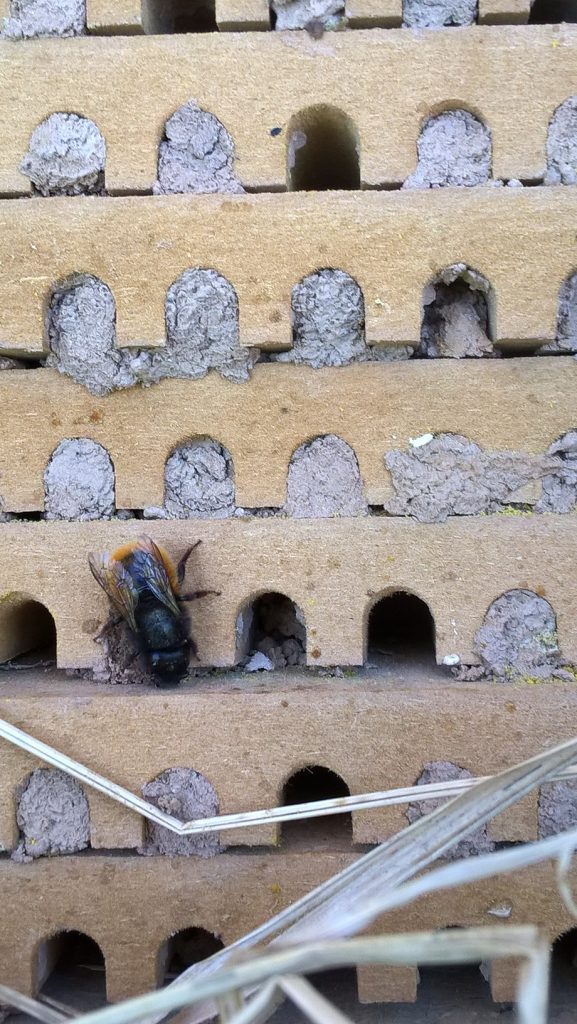 Während der Obstbaumblüte sind die Mauerbienen aus unserem Insektenhotel aktiv.