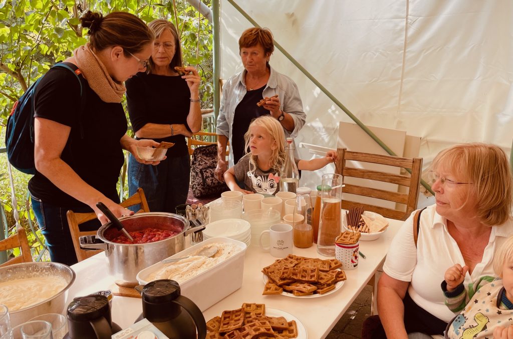 Heute trafen sich eine Menge SoLaWi Mitglieder, um lecker Erdbeersmoothie, Waffeln und Eis zu verzehren. Nach einem kurzem Ackerrundgang saßen wir in lockerer Runde zusammen und freuten uns an den leckeren Erdbeeren, die dieses Jahr gut gewachsen waren. Eine schöne Gelegenheit sich mal wieder zu treffen, auszutauschen und die Gemeinschaft zu leben.