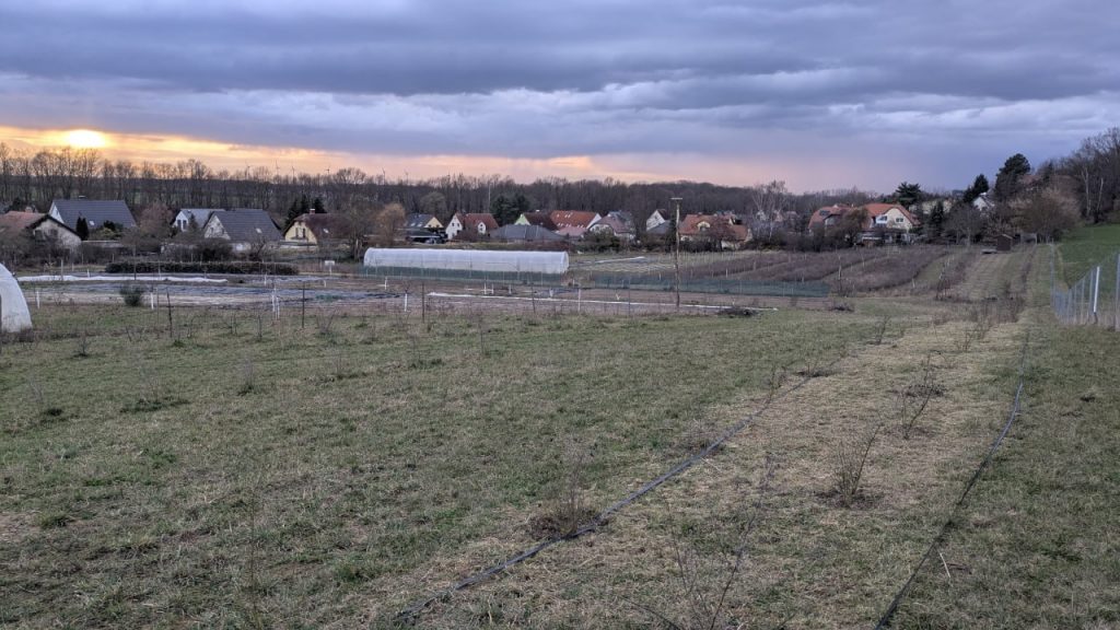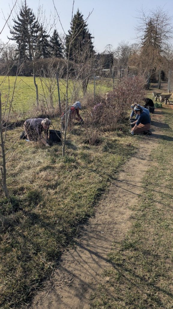 Wir haben dieses Jahr zuerst unsere Hecke gepflegt und danach Tröpfchenschläuche zur Bewässerung verlegt. Die ersten vier Jahre haben die Sträucher nun ein tiefes Wurzelsystem entwickelt, nun wollen wir sie regelmäßig aber ressourcenschonend gießen um auch das oberirdische Wachstum zu begünstigen. Die Hecke soll uns Windschutz bieten und vor der Abdrift der Nachbarn schützen – neben all den ökologischen Vorteilen.