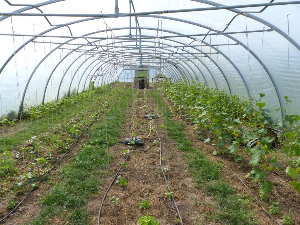 Gurken Satz 1 und Satz 2 und Melonen im Mulch mit Rasenwegen