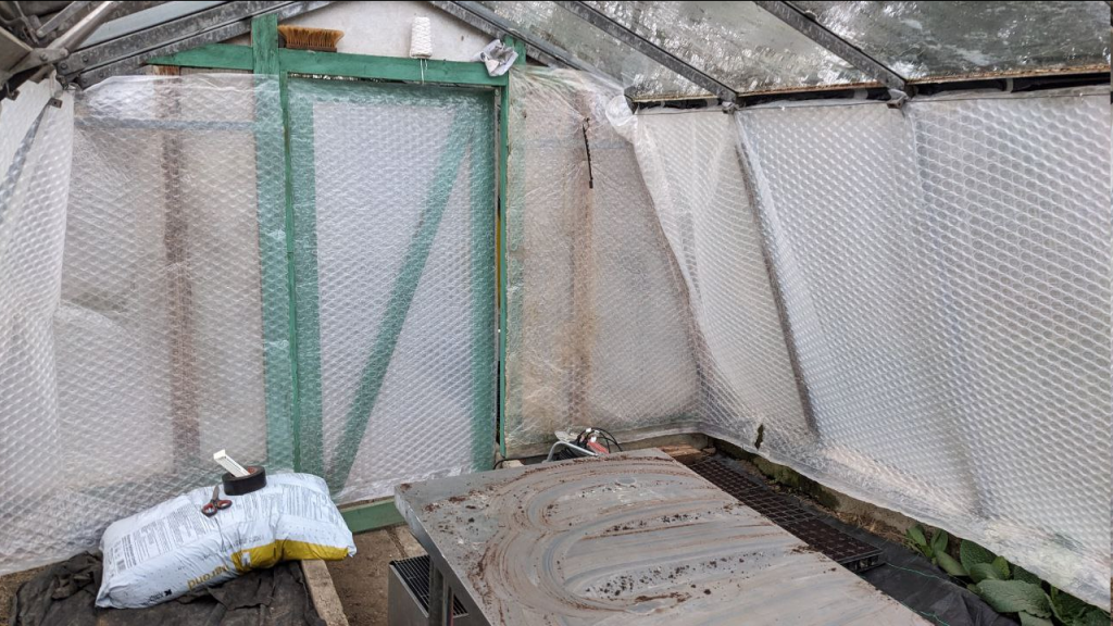 So haben wir ein altes DDR-Glasgewächshaus für unsere ersten Aussaaten umfunktioniert. Und hoffen das die Aussaaten, dann pünktlich umziehen können.