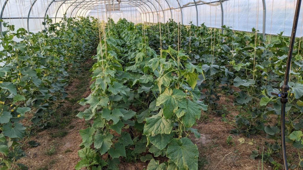 Während z.B. die Wühlmaus gerade den halben Satz Murrmel-Melonen im Gewächshaus hinweggerafft hat, haben wir gesunde und ertragreiche Gurken und eine Gurkenschwemme für die Mitglieder.